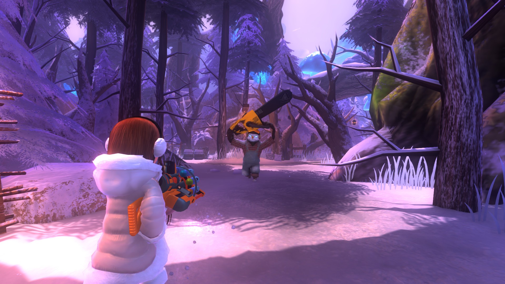 Lo que sorprende es lo bien que conviven todos estos sistemas. Carol cuenta con una enorme variedad de armas que va encontrando durante el juego, desde pistolas de juguete hasta rifles láser, pasando por lanzacohetes absurdamente coloridos. Cada arma tiene un comportamiento particular, y algunas funcionan mejor contra ciertos tipos de enemigos.
